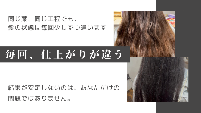 考えながら組み立てられる縮毛矯正を目的にしています。